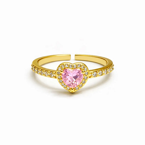 Anillo ajustable para mujer con elegante diseño de corazón, decorado con una piedra central en forma de corazón y un delicado contorno de cristales que aportan brillo y sofisticación. Su estilo romántico lo convierte en una joya ideal para expresar amor y elegancia.
