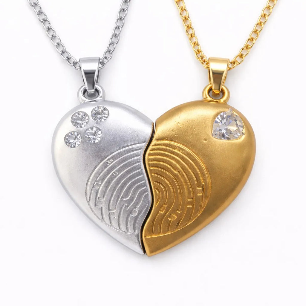 Collares para Parejas Corazón Huella de Dedo Dorado y Plateado